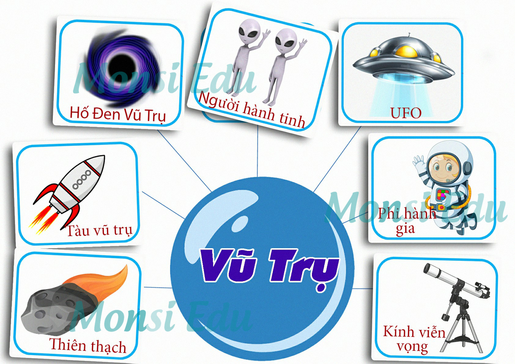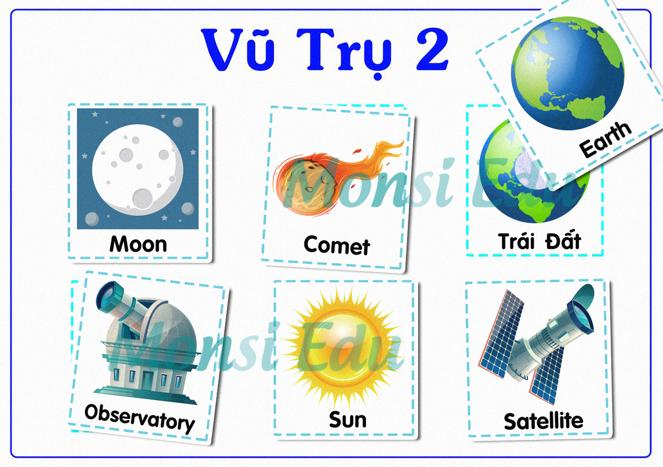 - Các chủ đề vũ trụ: trái đất, hành tinh, sao chổi,…